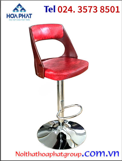 noi that hoa phat, nội thất hòa phát Ghế bar tựa gỗ sơn kết hợp bọc PVC, chân đế thép dậpmạ Cr-Ni bóng sáng, điều chỉnh được độ cao.